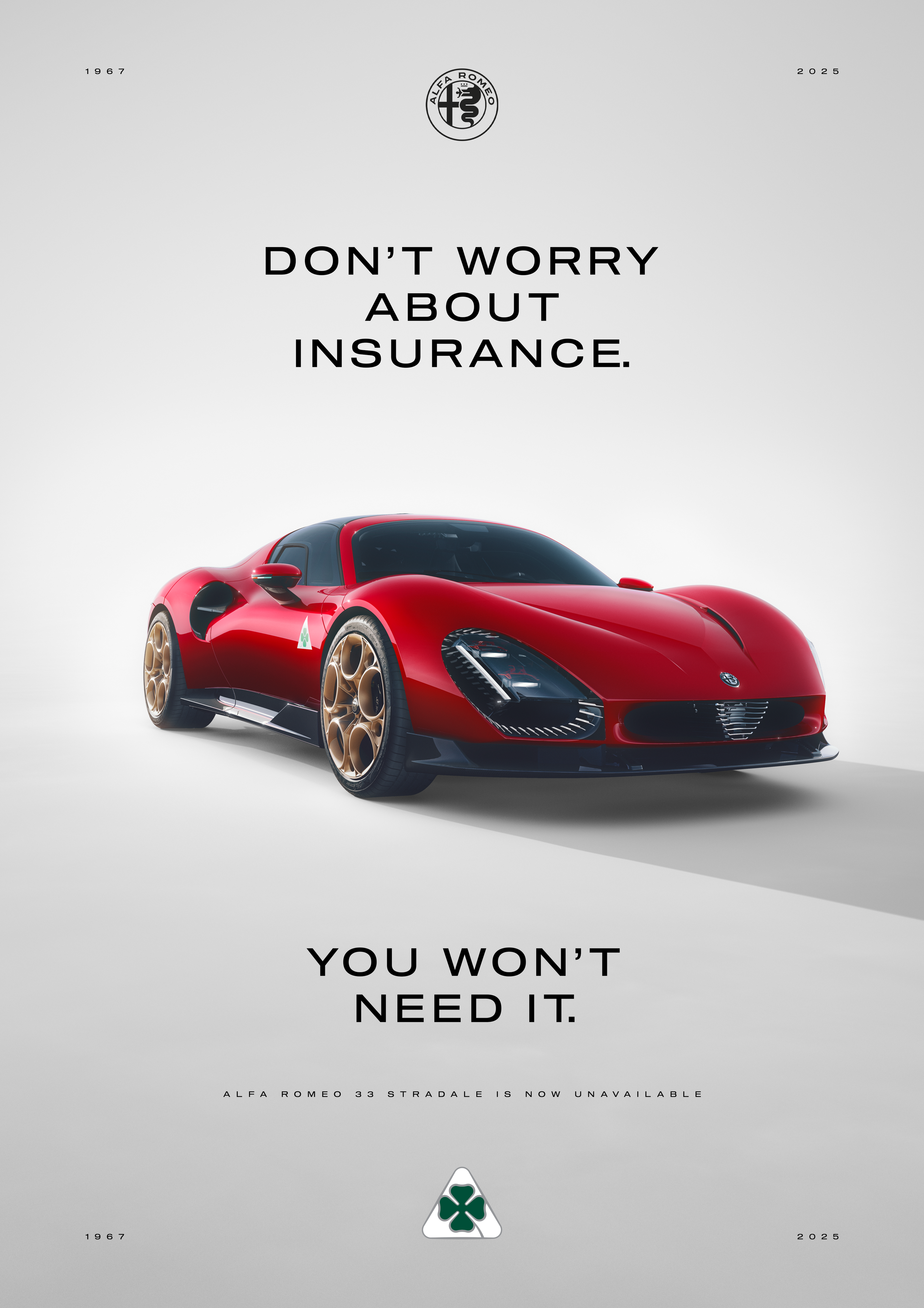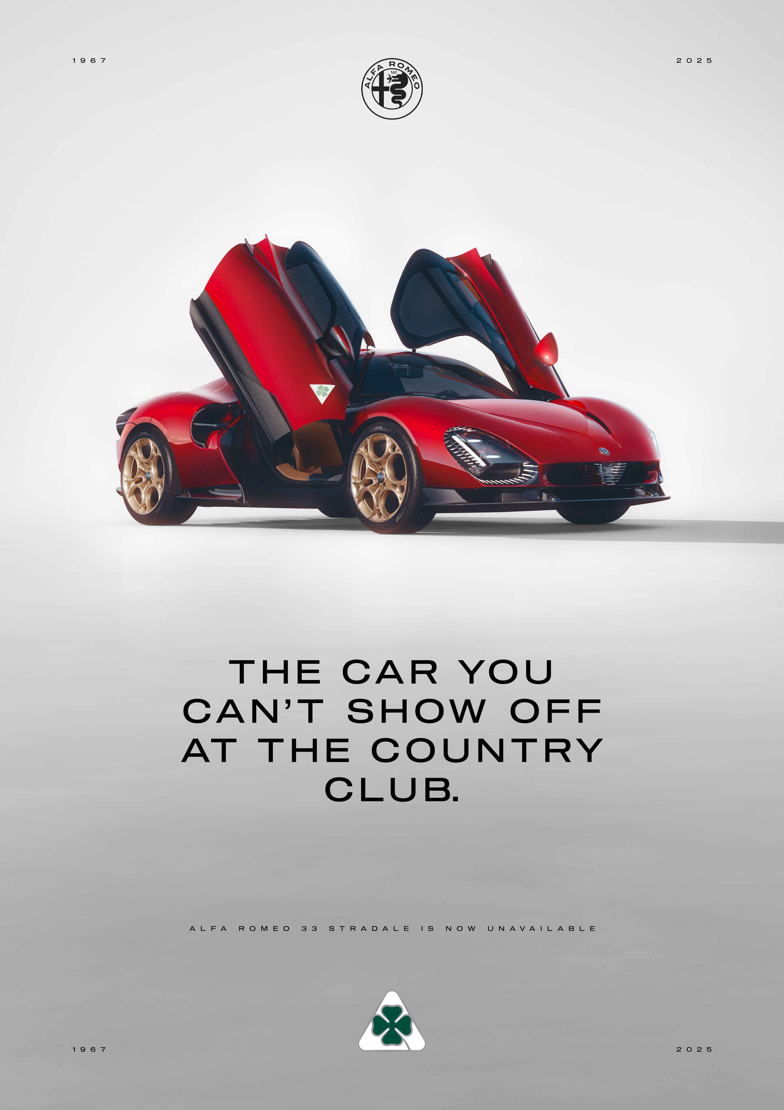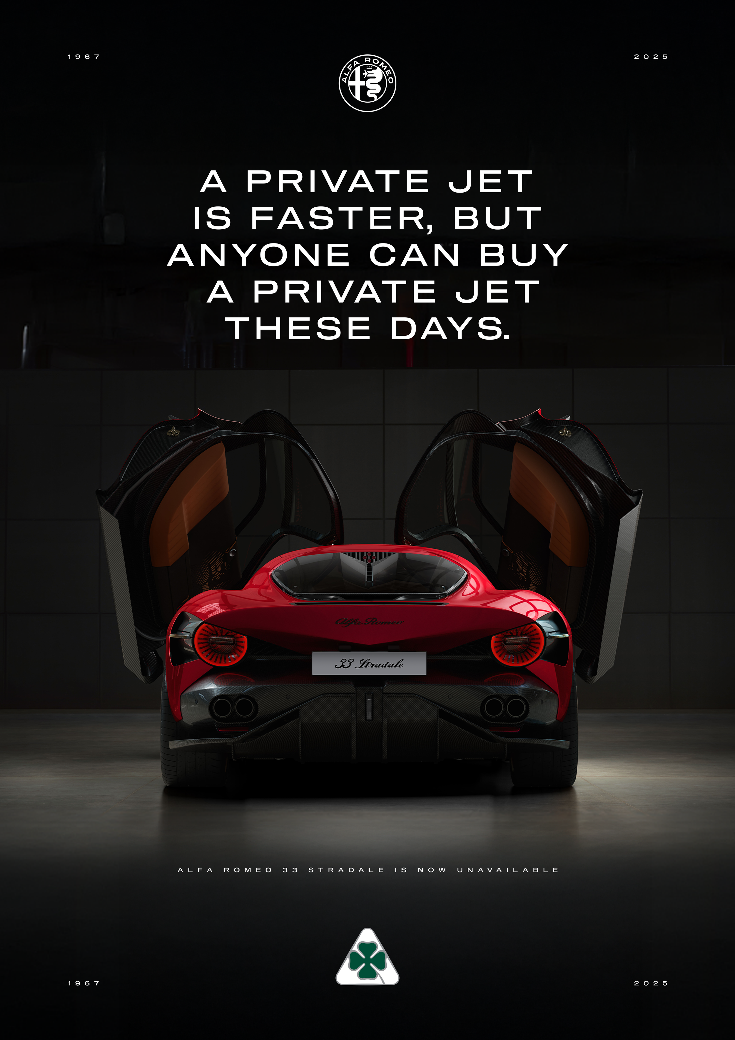 How do you sell a car that you can’t sell? That was the brief. The Alfa Romeo 33 Stradale, a tribute to the legendary 1967 icon, came back in a limited run of just 33 units, each rumoured to cost around €3 million, and every single one already sold before launch. So we made a campaign that didn’t try to sell it. Instead, we had fun with the fact you’ll never get your hands on one.